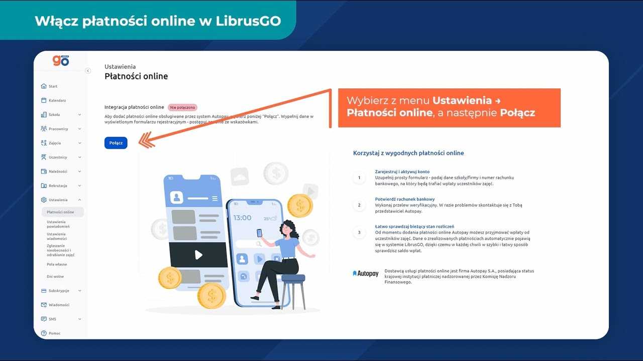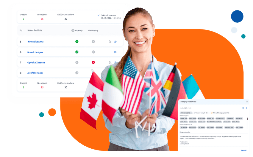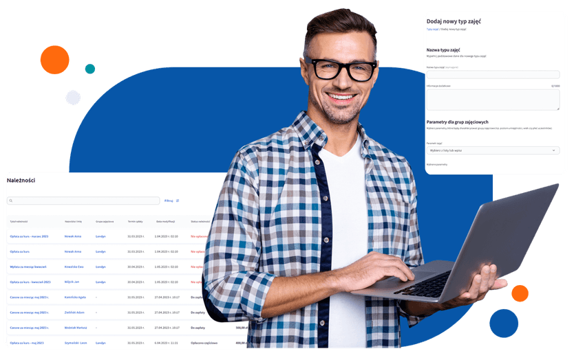 Otrzymujesz intuicyjny system do zarządzania Twoją szkołą. Łatwo i szybko możesz dopasować go do swoich potrzeb, ustawiając m.in. typy zajęć, dostępy dla pracowników, różne lokalizacje i miejsca, rekrutację online za pomocą spersonalizowanego formularza. Dzięki zintegrowanemu systemowi płatności wszystkie rozliczenia masz zawsze pod ręką, a system sam przypomni uczestnikom o zaległościach i kolejnych wpłatach – zwiększy to skuteczność pobierania należności.