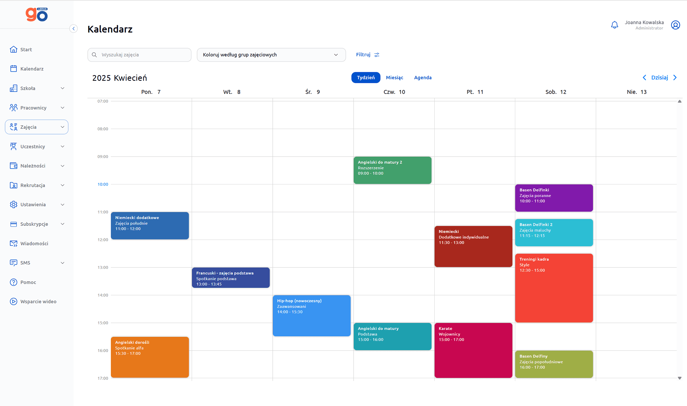 - Przejrzysty kalendarz z informacjami dot. zaplanowanych zajęć, m.in. termin czy miejsce